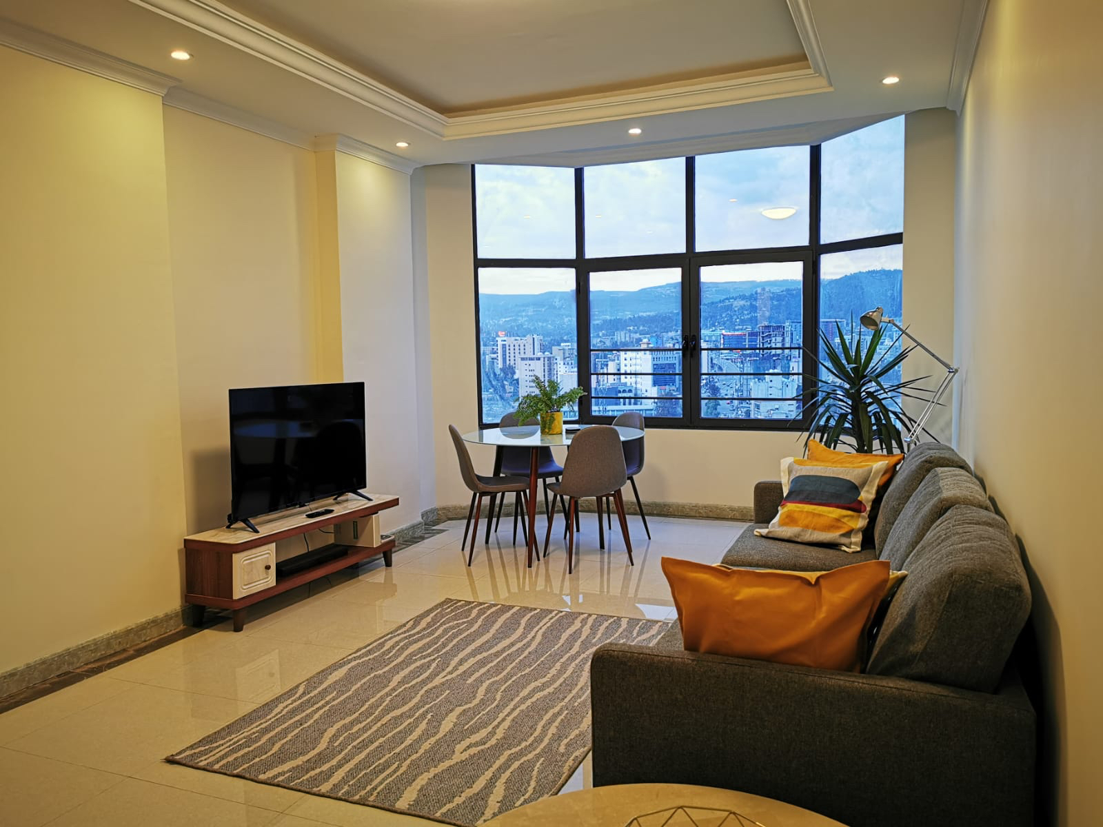 All furniture and appliances recently imported and new (except bed). I will furnish the second bedroom based on the request of the tenant (office or bedroom furniture)