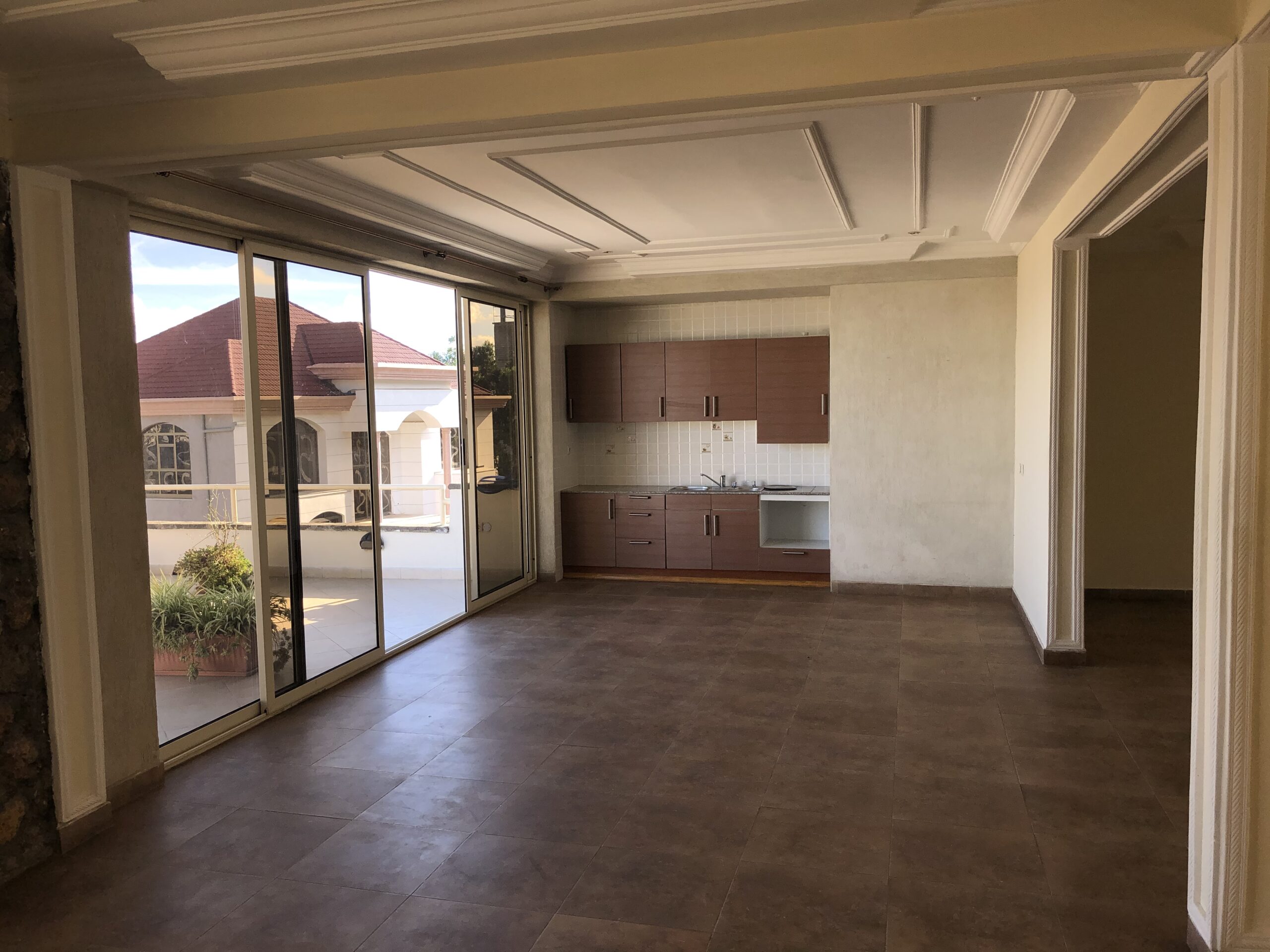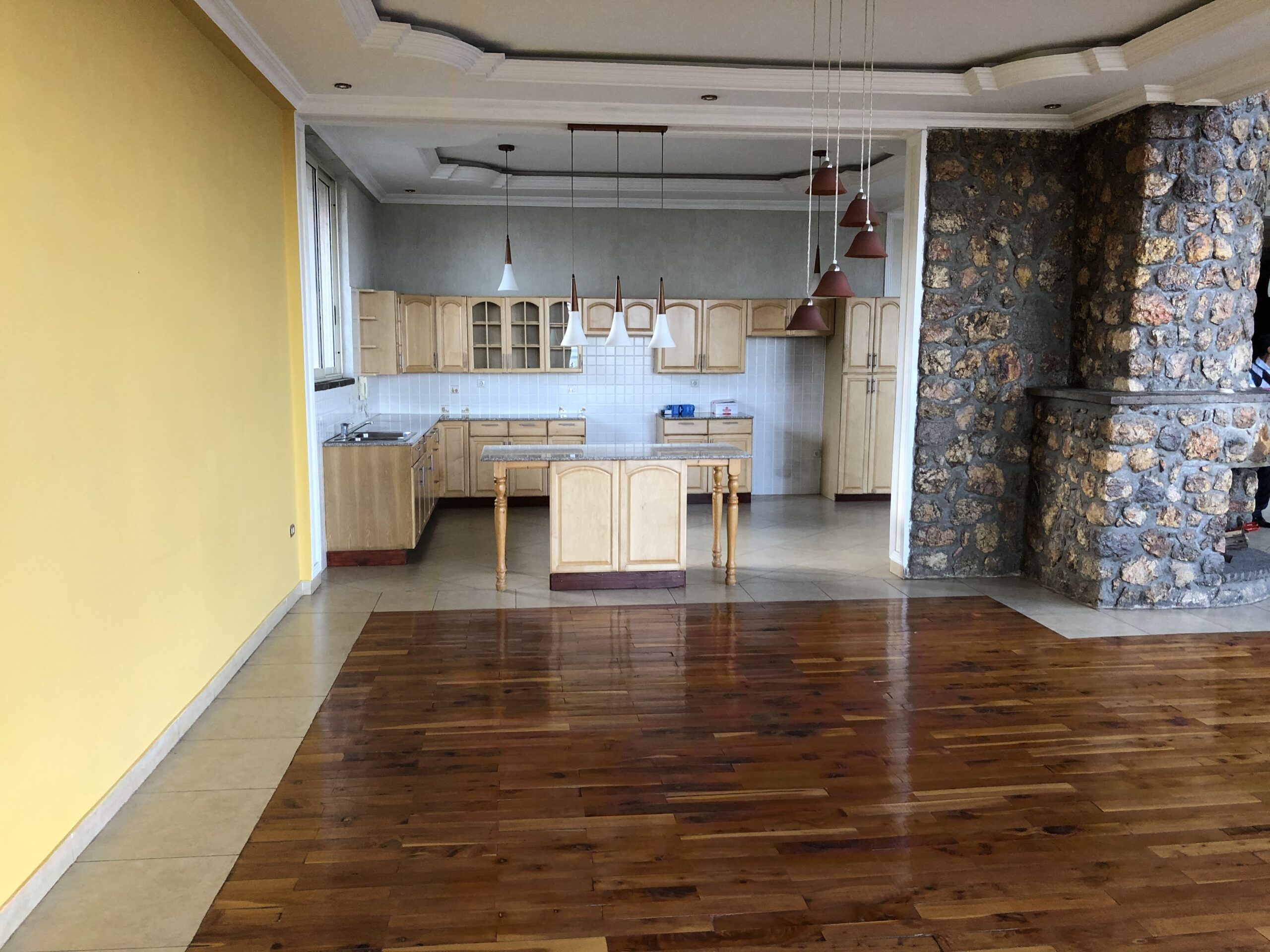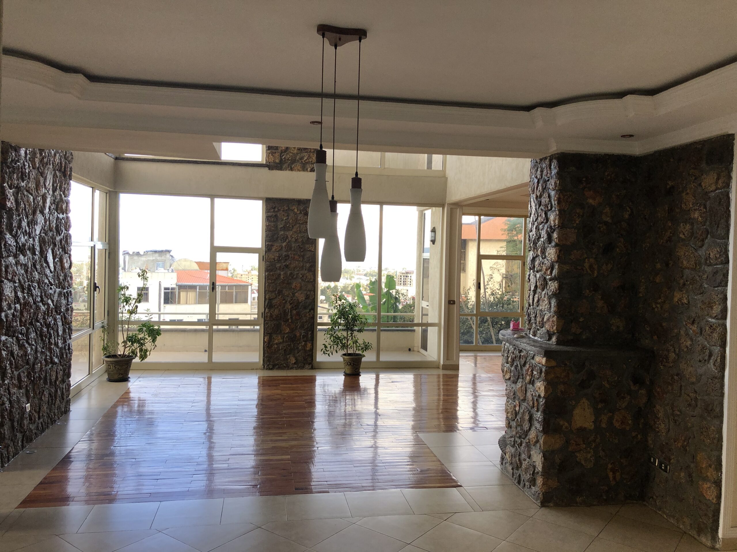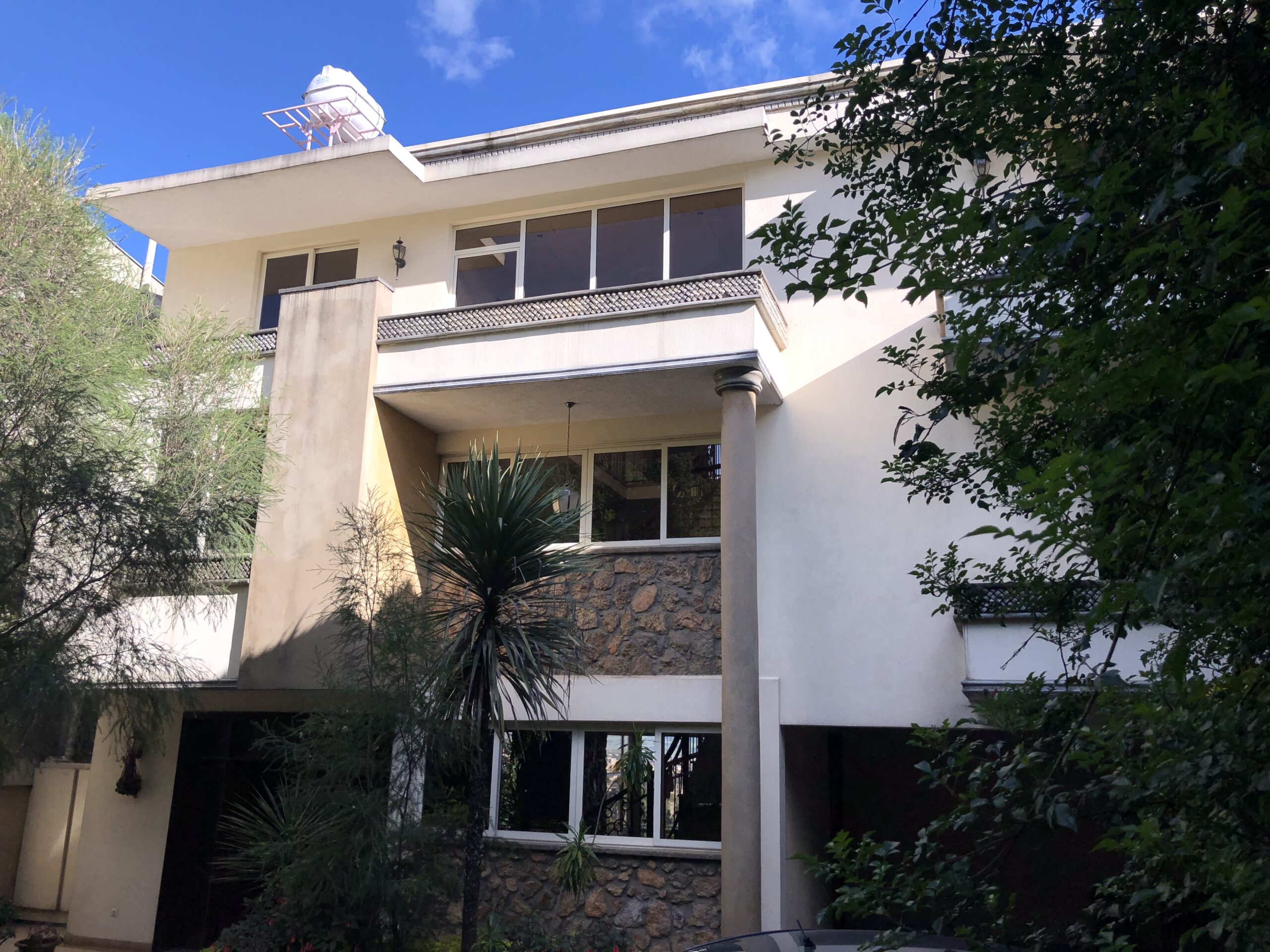 If you are looking for a solidly built beautiful family residence, look no further. This is a thoughtfully designed home by South African architects and a lot of beautiful natural stones were used in the construction of the house. The house sits on Yeka Mountains, where you get breathtaking view of Addis Ababa and the Yerer Mountain Range. You have an amazing view even from “the basement,” which doesn’t feel like a basement at all.